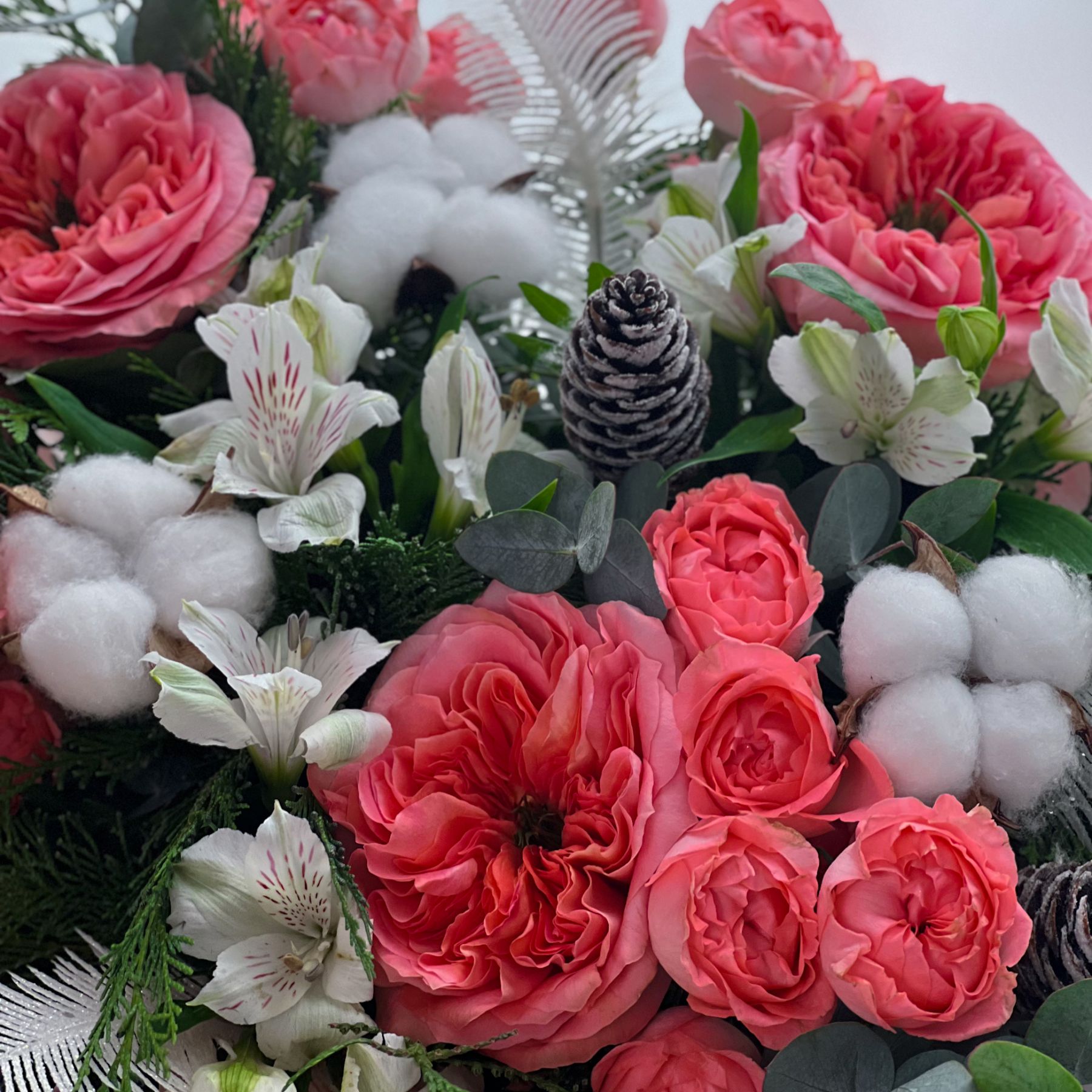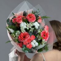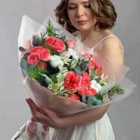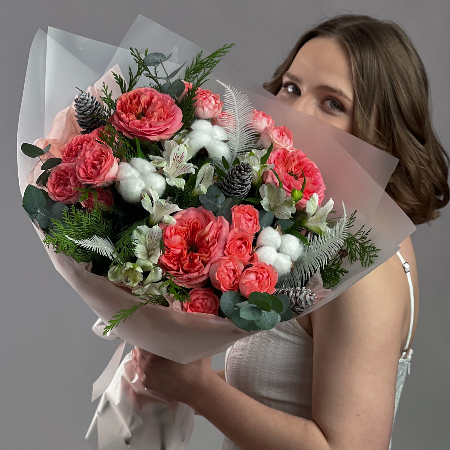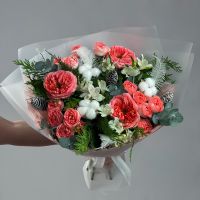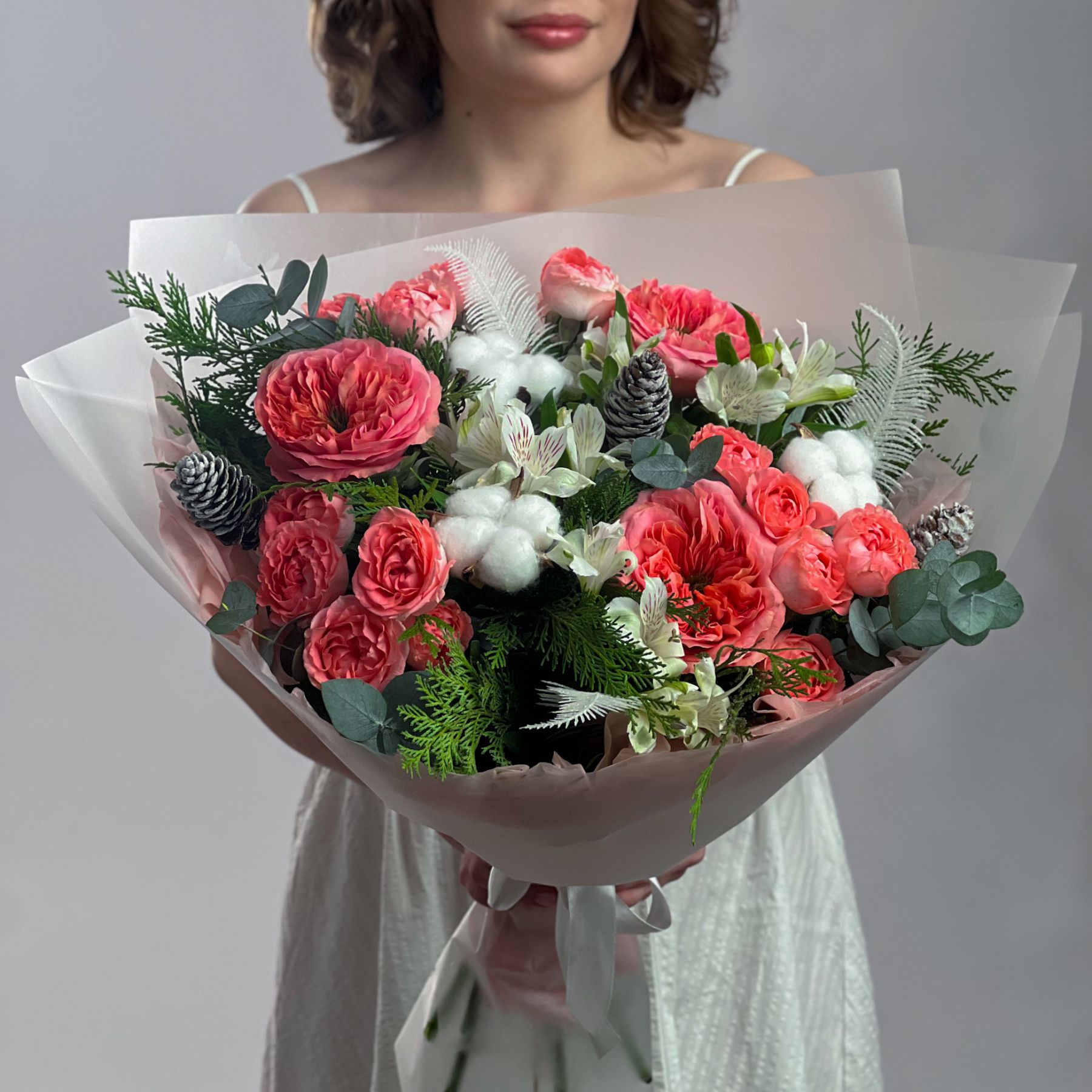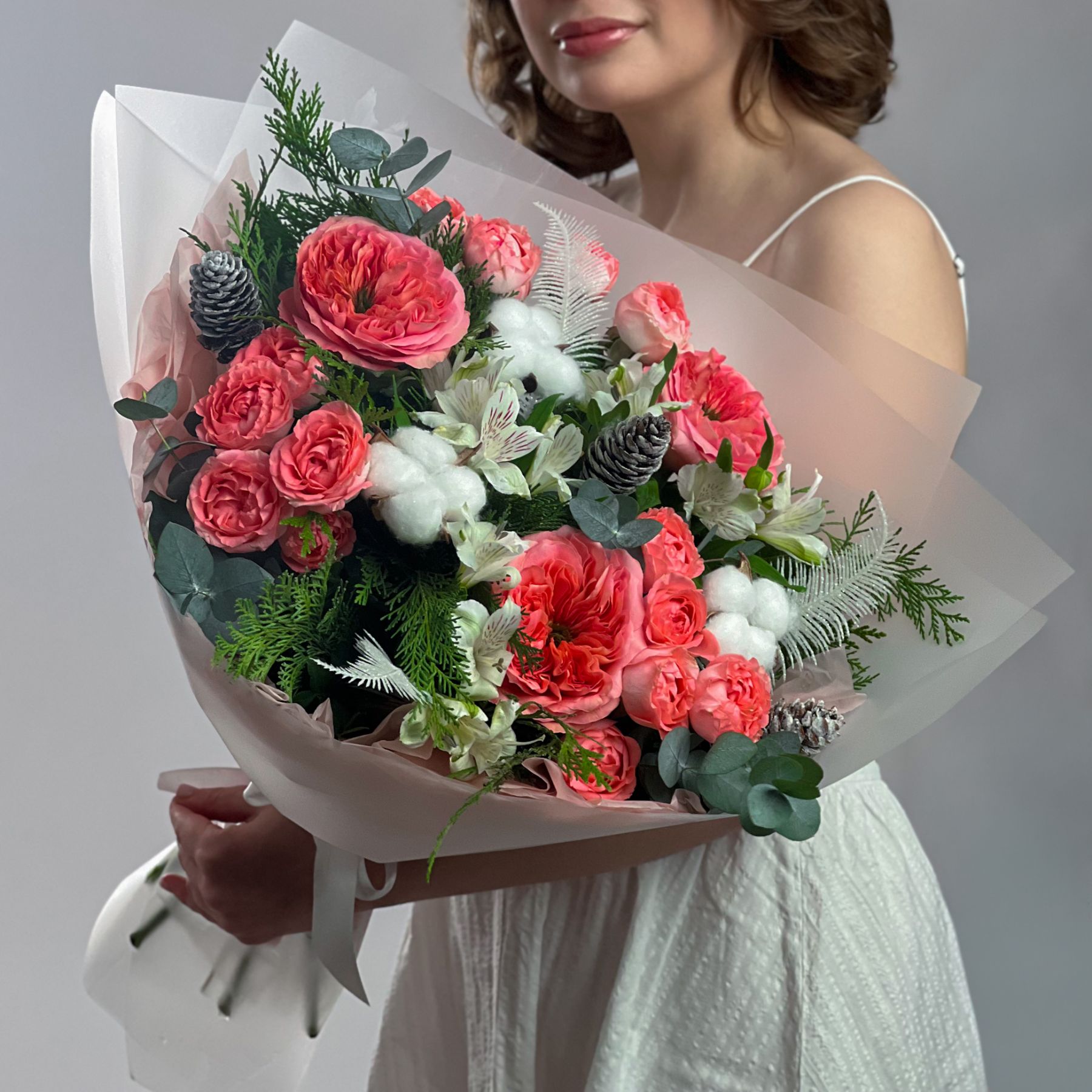 Авторский букет с пионовидной розой Мандарин Экспрешн