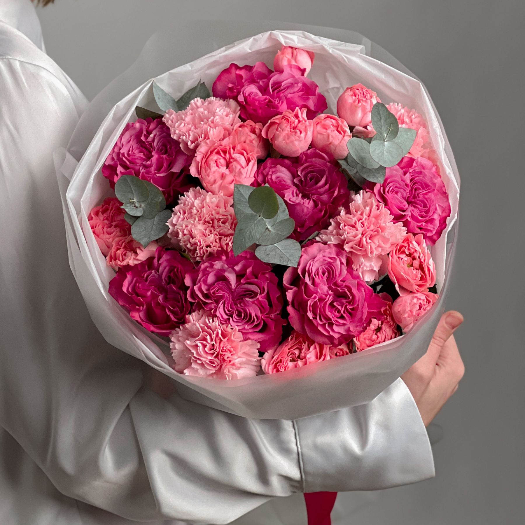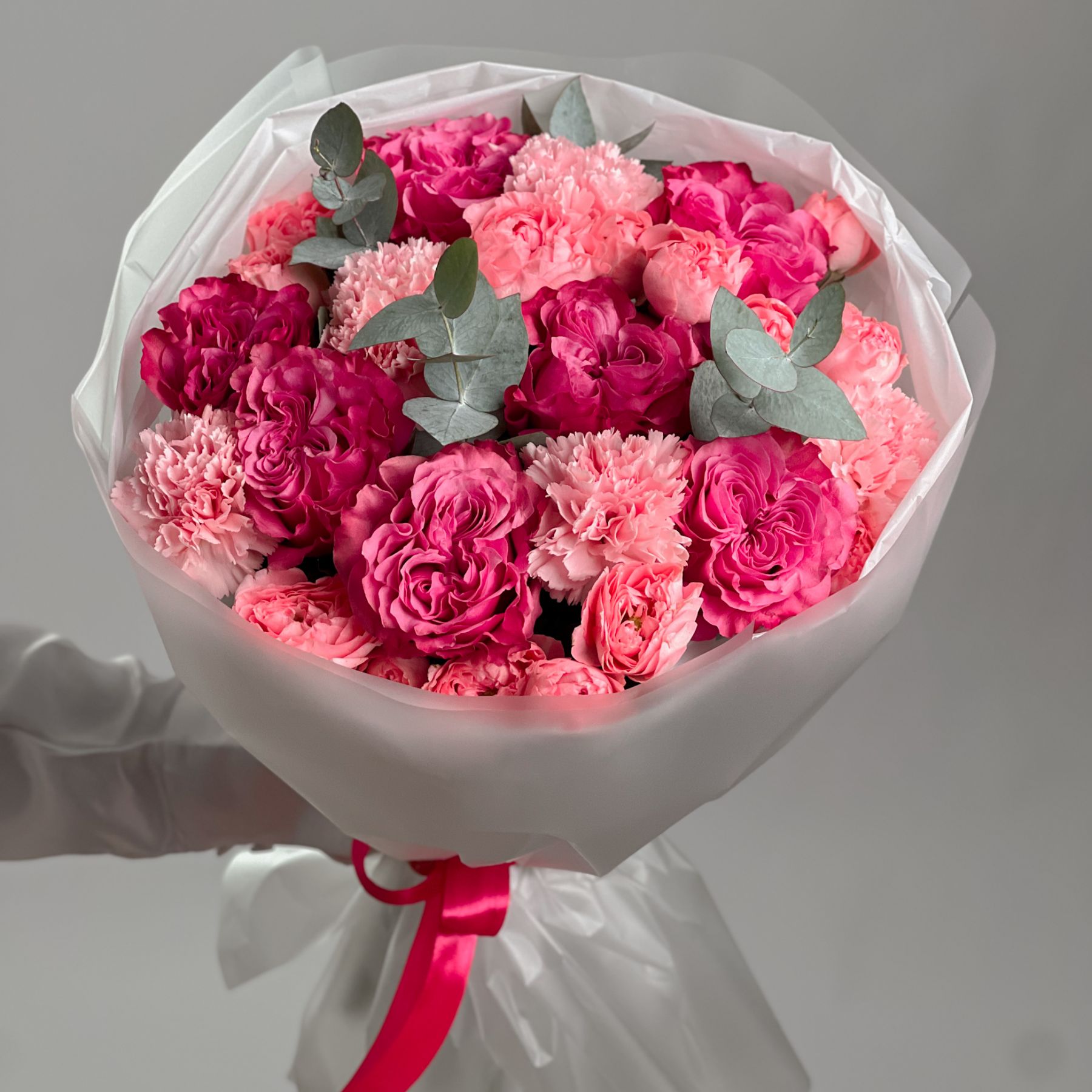 Авторский букет с розой "Кантри Блюз" . В составе: уникальная роза Кантри Блюз, пушистая розовая гвоздика, нежные бутоны кустовой розы и свежий эвкалипт. Букет для особенного момента. Мы предлагаем быструю и надежную доставку букетов по Самаре. Заказывайте самые свежие цветы прямо сейчас!