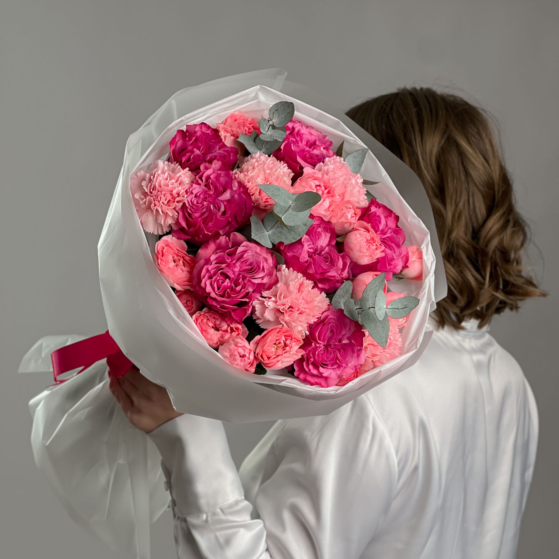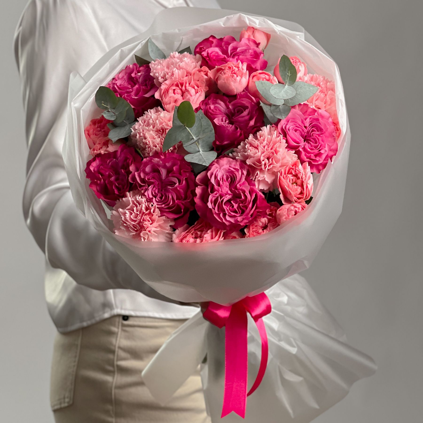 Авторский букет с розой "Кантри Блюз" . В составе: уникальная роза Кантри Блюз, пушистая розовая гвоздика, нежные бутоны кустовой розы и свежий эвкалипт. Букет для особенного момента. Мы предлагаем быструю и надежную доставку букетов по Самаре. Заказывайте самые свежие цветы прямо сейчас!