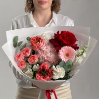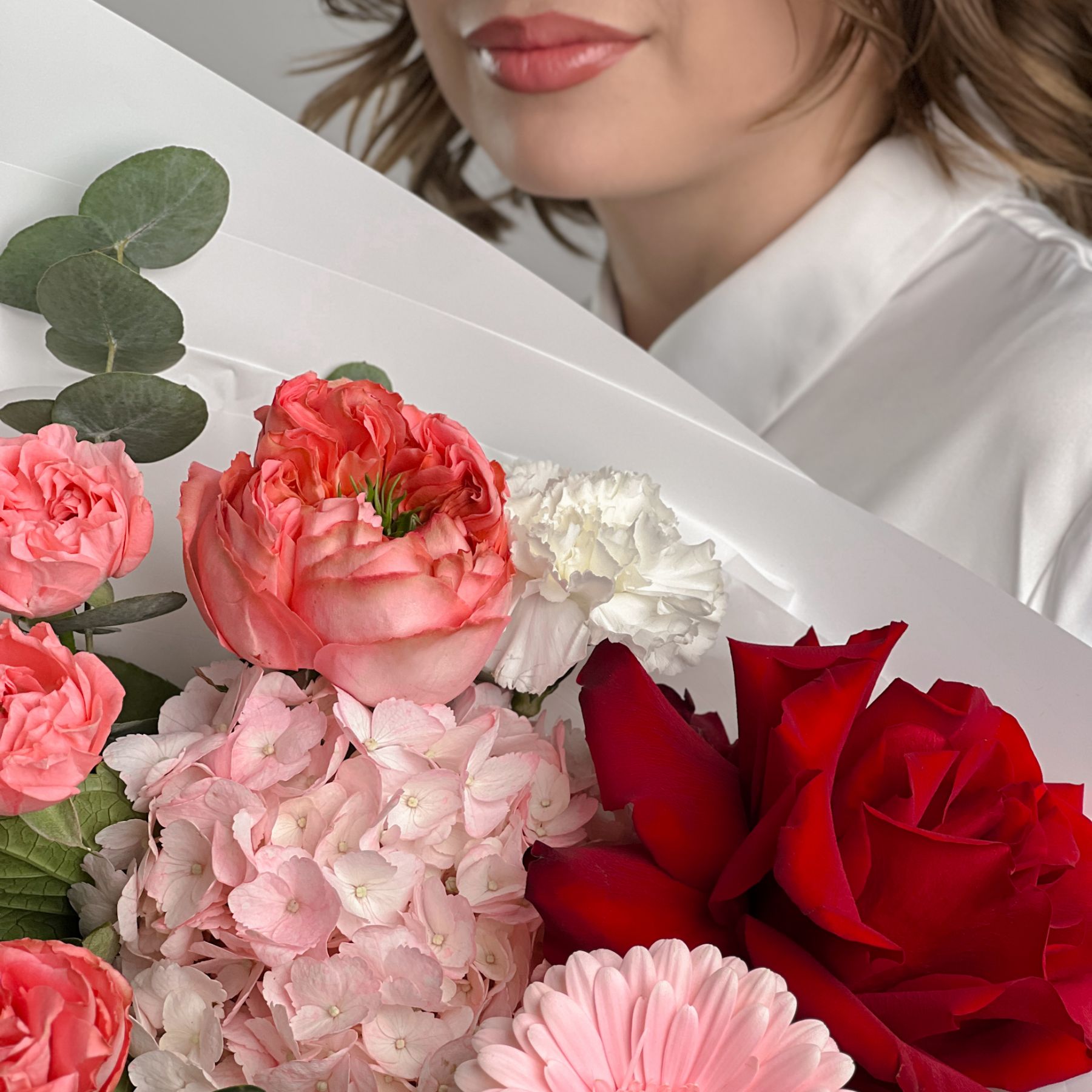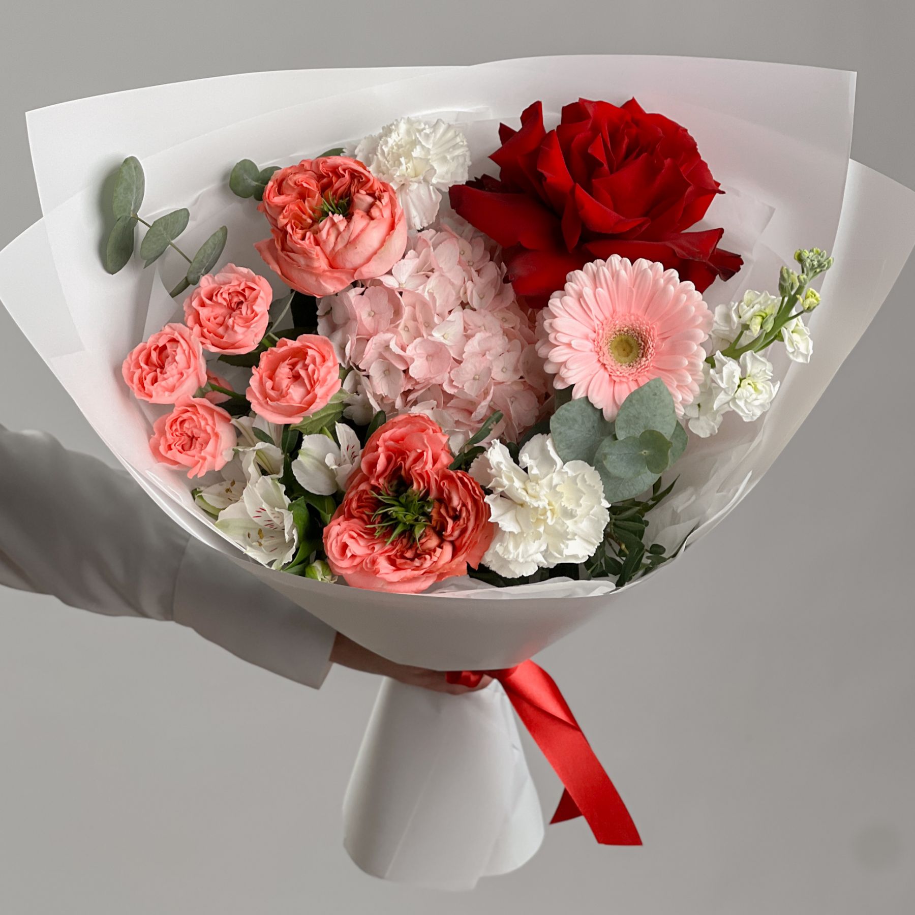 Авторский букет с розой "Мандарин Экспрешн" . В нем собраны сочные краски: роза Мандалин, оранжевая альстромерия, нежная гортензия и гвоздика. Их дополняют розовая кустовая роза, гермини и маттиола с эвкалиптом. Готовый подарок для яркого поздравления! Закажите доставку букетов по Самаре. Наши бережные курьеры доставят свежие цветы аккуратно и вовремя. Купить цветы можно прямо на сайте.