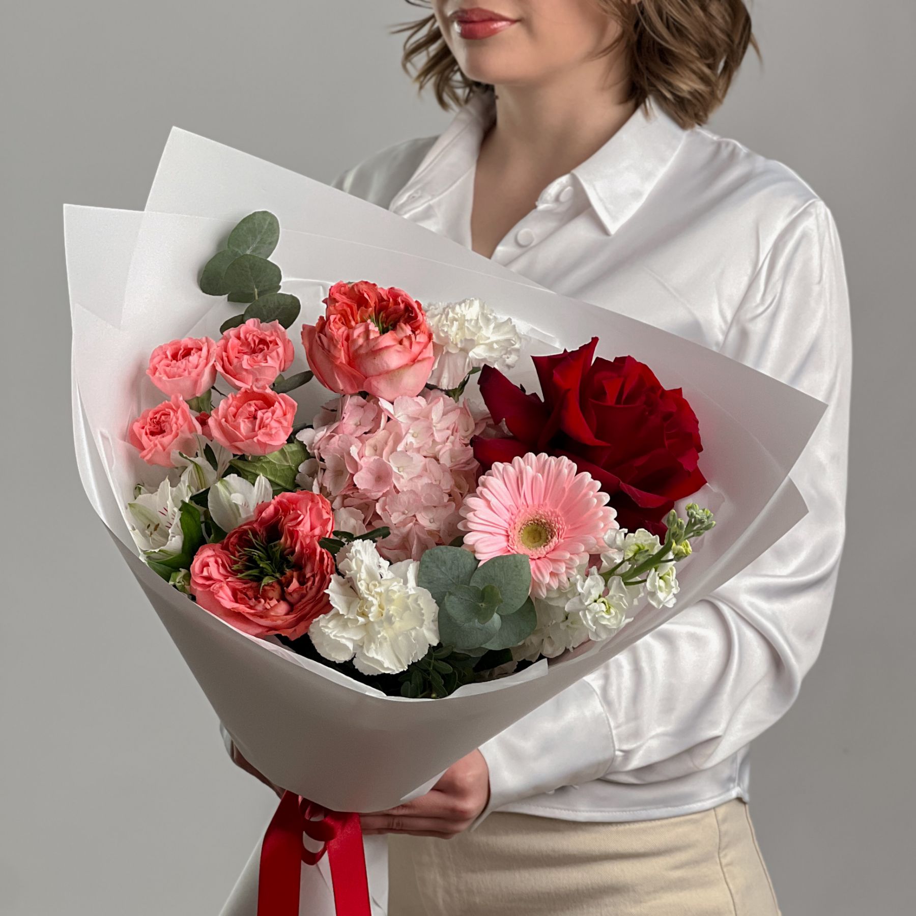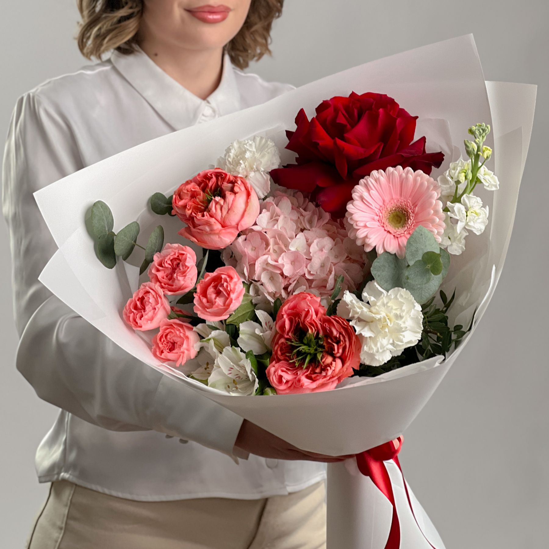 Авторский букет с розой "Мандарин Экспрешн" . В нем собраны сочные краски: роза Мандалин, оранжевая альстромерия, нежная гортензия и гвоздика. Их дополняют розовая кустовая роза, гермини и маттиола с эвкалиптом. Готовый подарок для яркого поздравления! Закажите доставку букетов по Самаре. Наши бережные курьеры доставят свежие цветы аккуратно и вовремя. Купить цветы можно прямо на сайте.