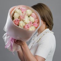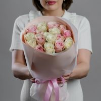 Этот изысканный букет из 17 нежных роз — яркое воплощение грации и утонченности. Каждая роза словно мягкая нота в гармоничной симфонии. В круглой упаковке эти цветы выглядят особенно стильно и аккуратно.