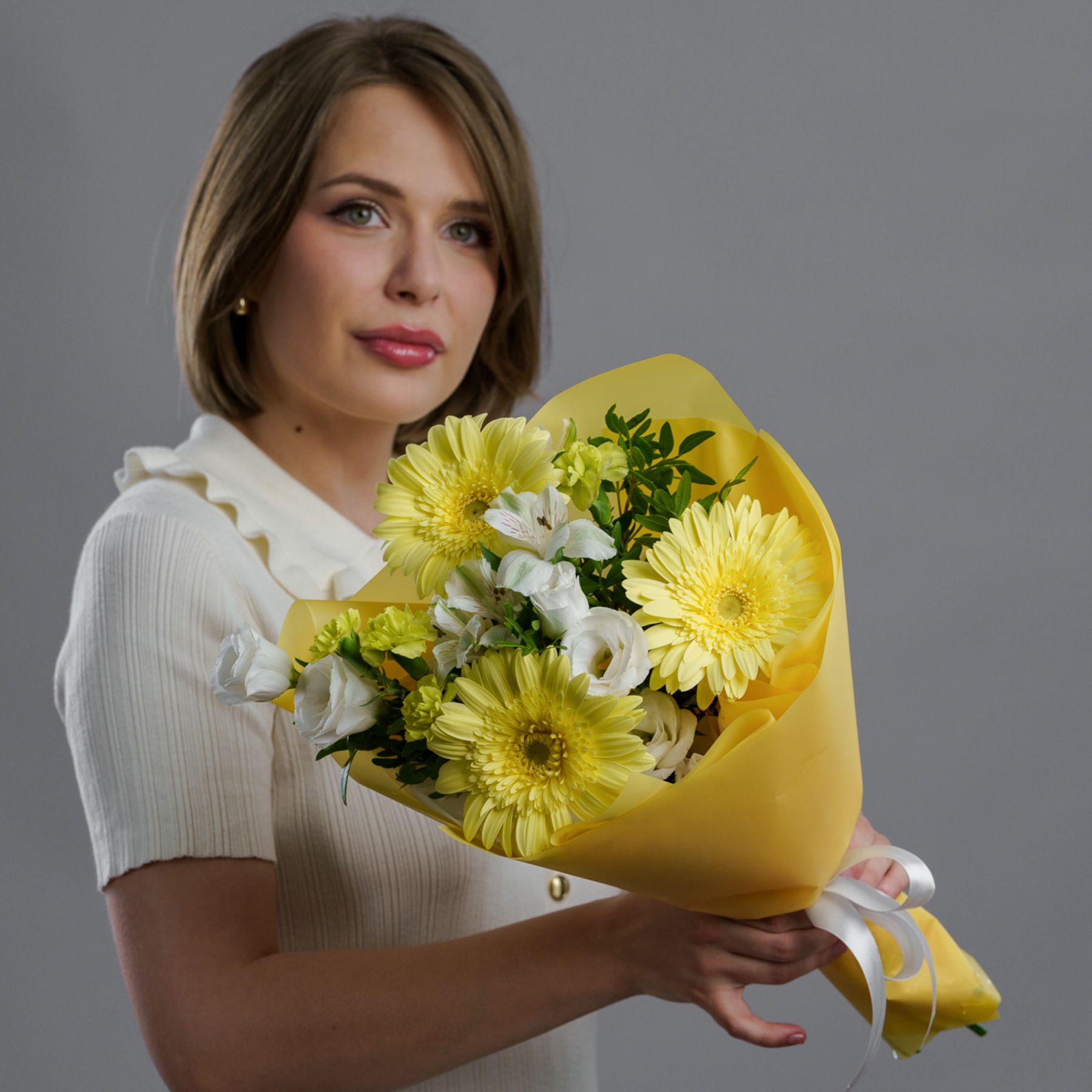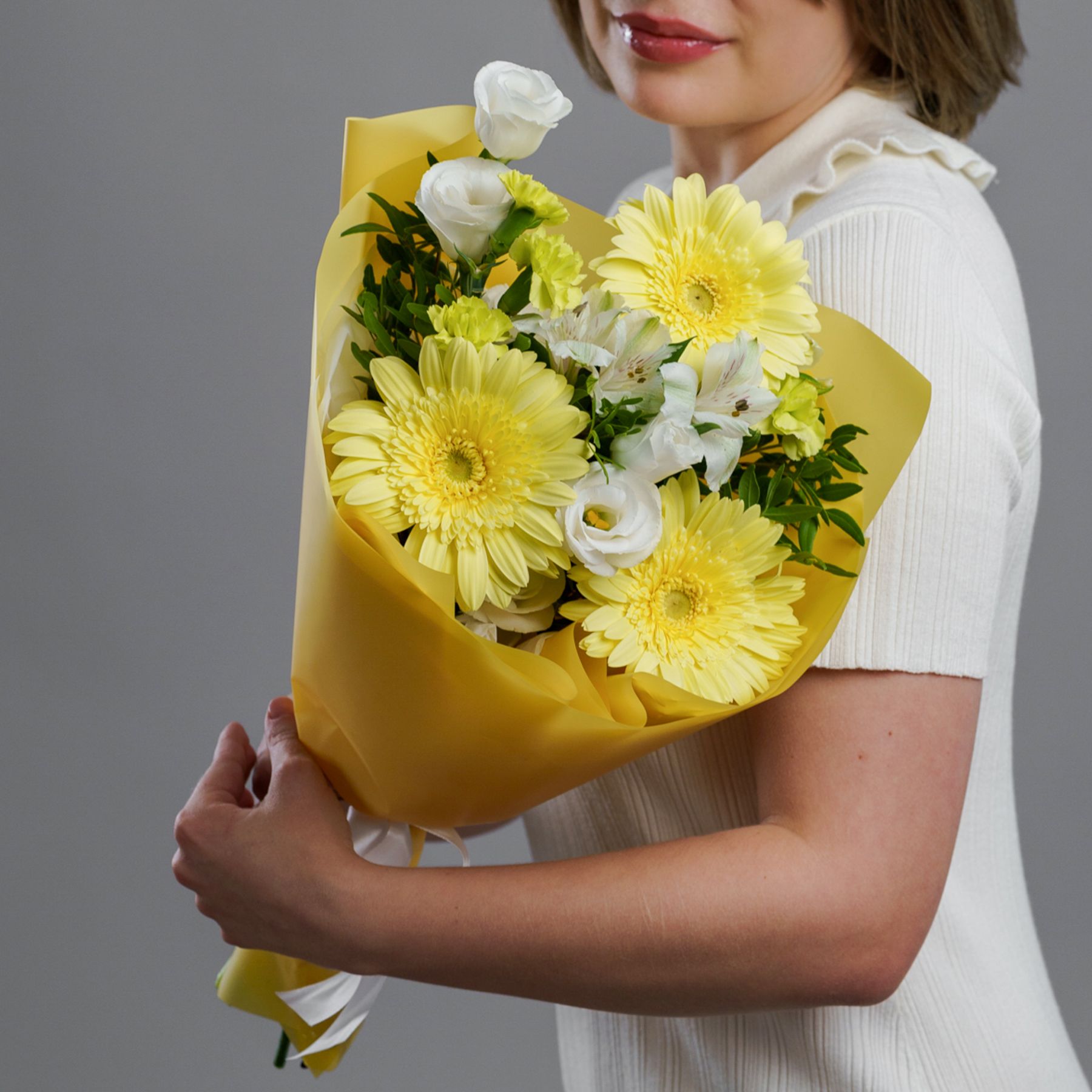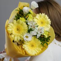 Этот яркий букет в жёлтых тонах подарит радость и тепло. Цветы красиво собраны в стильную упаковку и станут отличным комплиментом для близких и коллег. Букет подойдёт для любого праздника и создаст позитивную атмосферу. Закажите бесплатную доставку по Самаре и порадуйте своих близких свежими цветами. Быстро и удобно — подарок, который запомнится надолго.