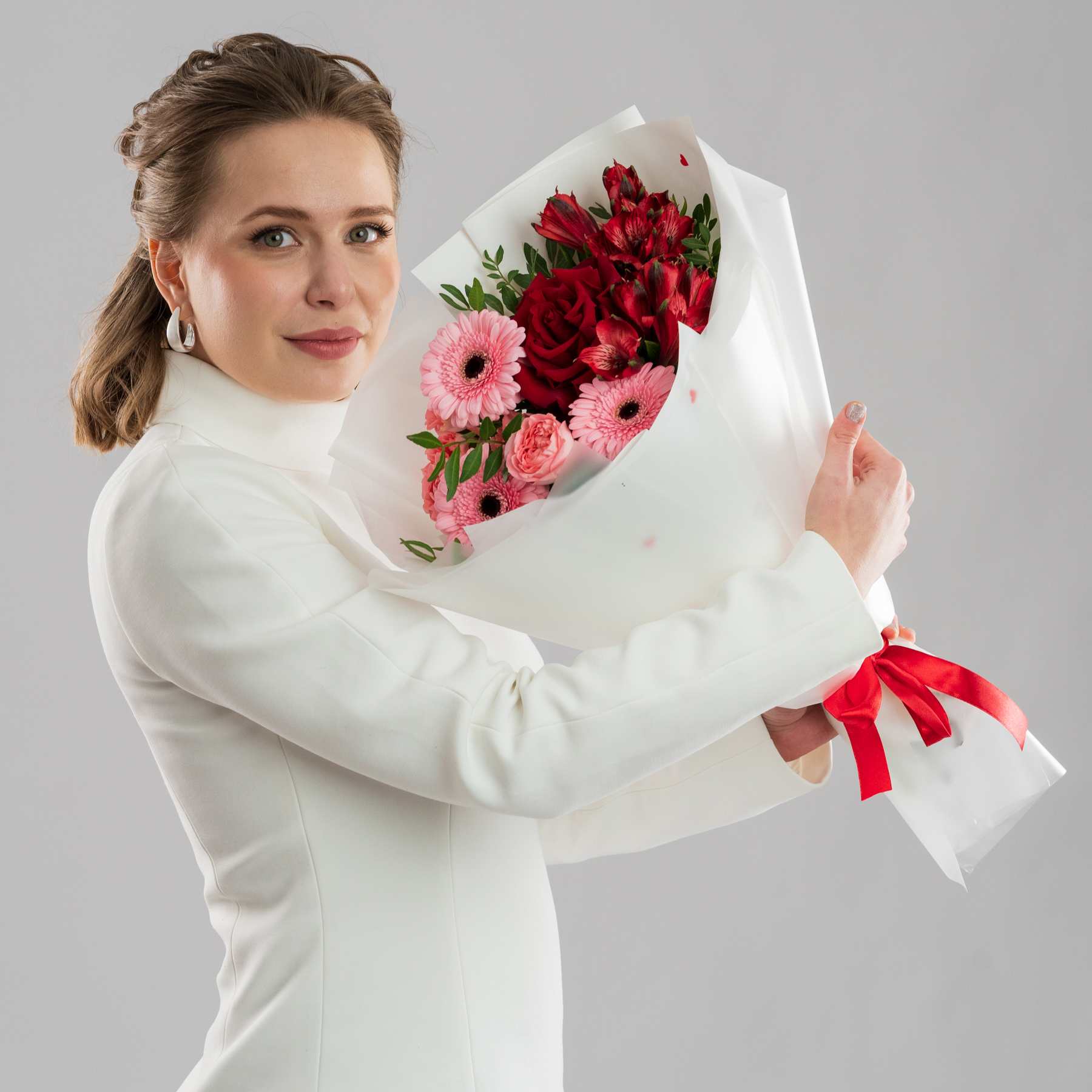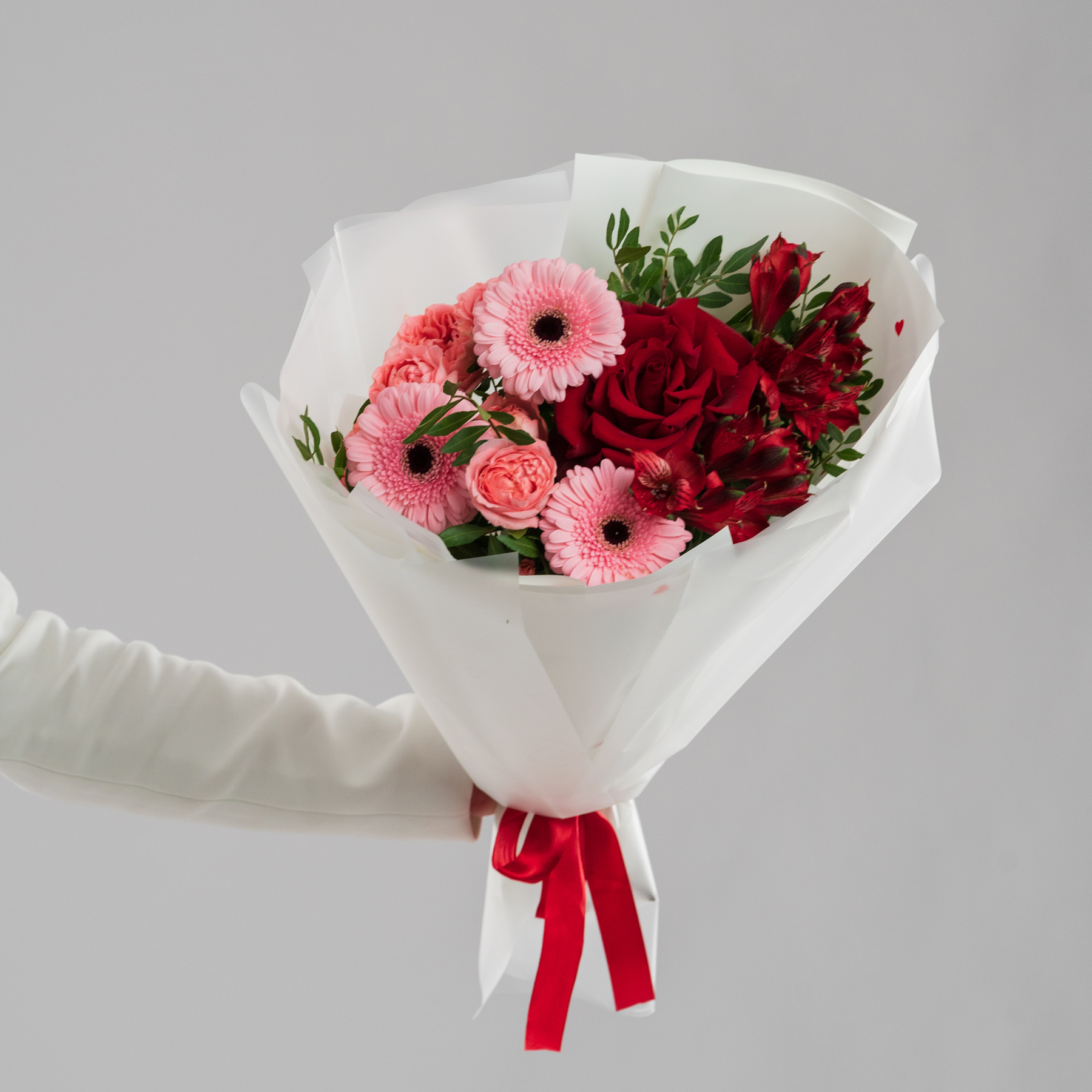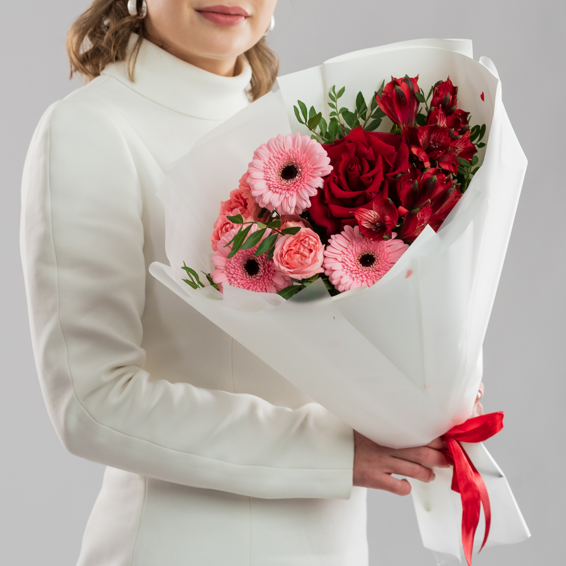 Воплощение вневременной классики и уверенности в чувствах. Этот букет — как клятва, обещание, которое даётся один раз. Он роскошен в своей завершённости и полноте.
