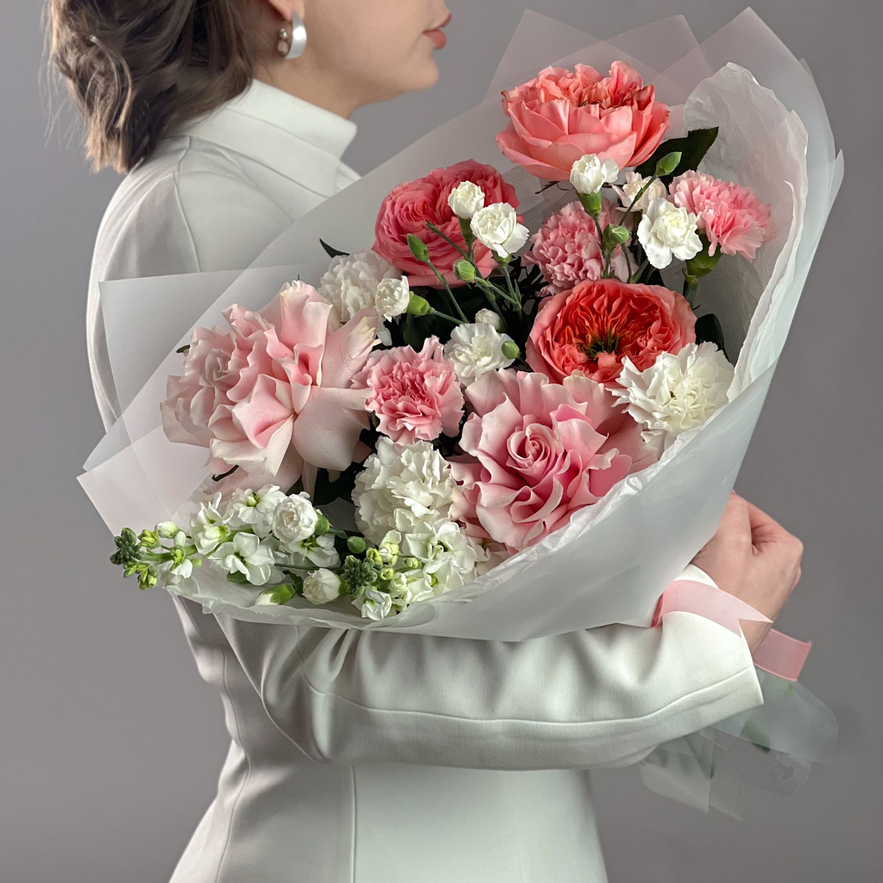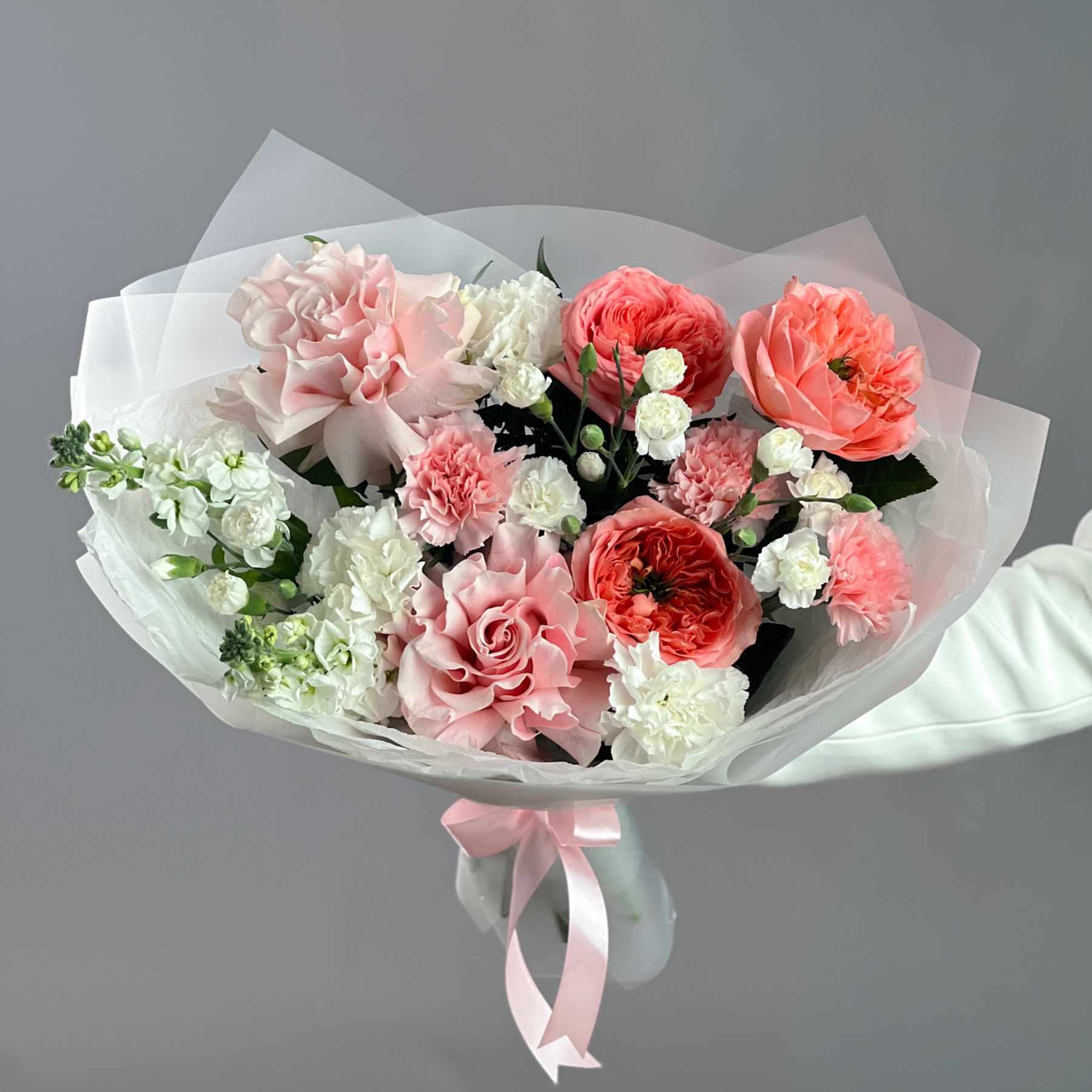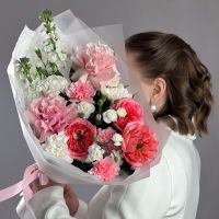 Букет с маттиолой и пионовидной розой
