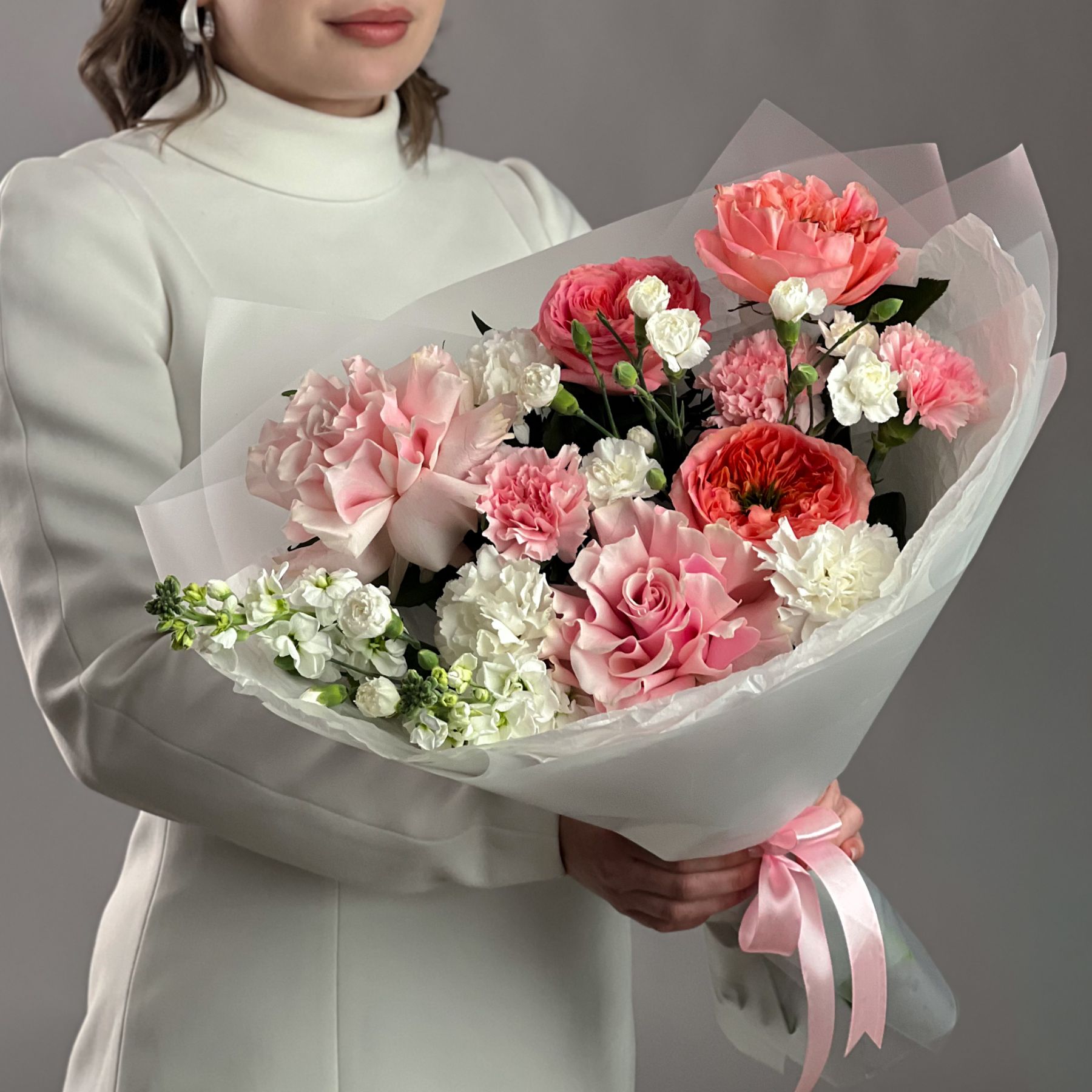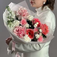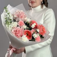 Букет с маттиолой и пионовидной розой