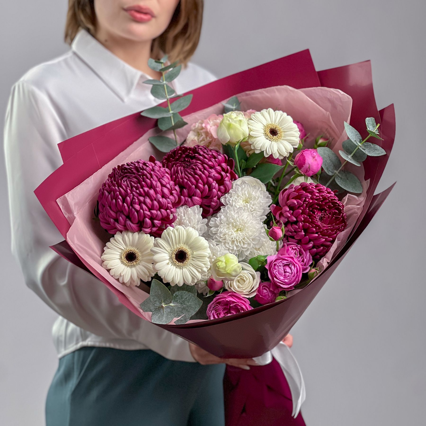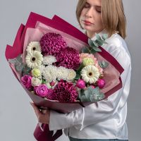 Этот дизайнерский букет «Бигуди» — яркий и оригинальный цветочный набор. В него входят три бигуди, гермини, хризантема, эустома, мисты баблоуз, эвкалипт, гортензия и тишью. Букет красиво упакован и отлично подойдет в подарок или для украшения интерьера. Несмотря на насыщенную композицию, он выглядит аккуратно и свежо. Бесплатная доставка по Самаре делает покупку еще более приятной.