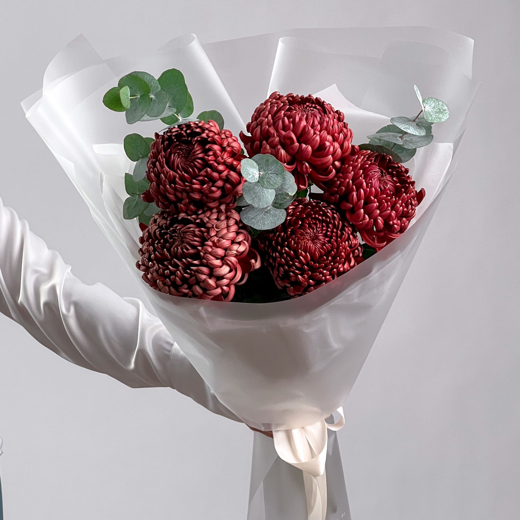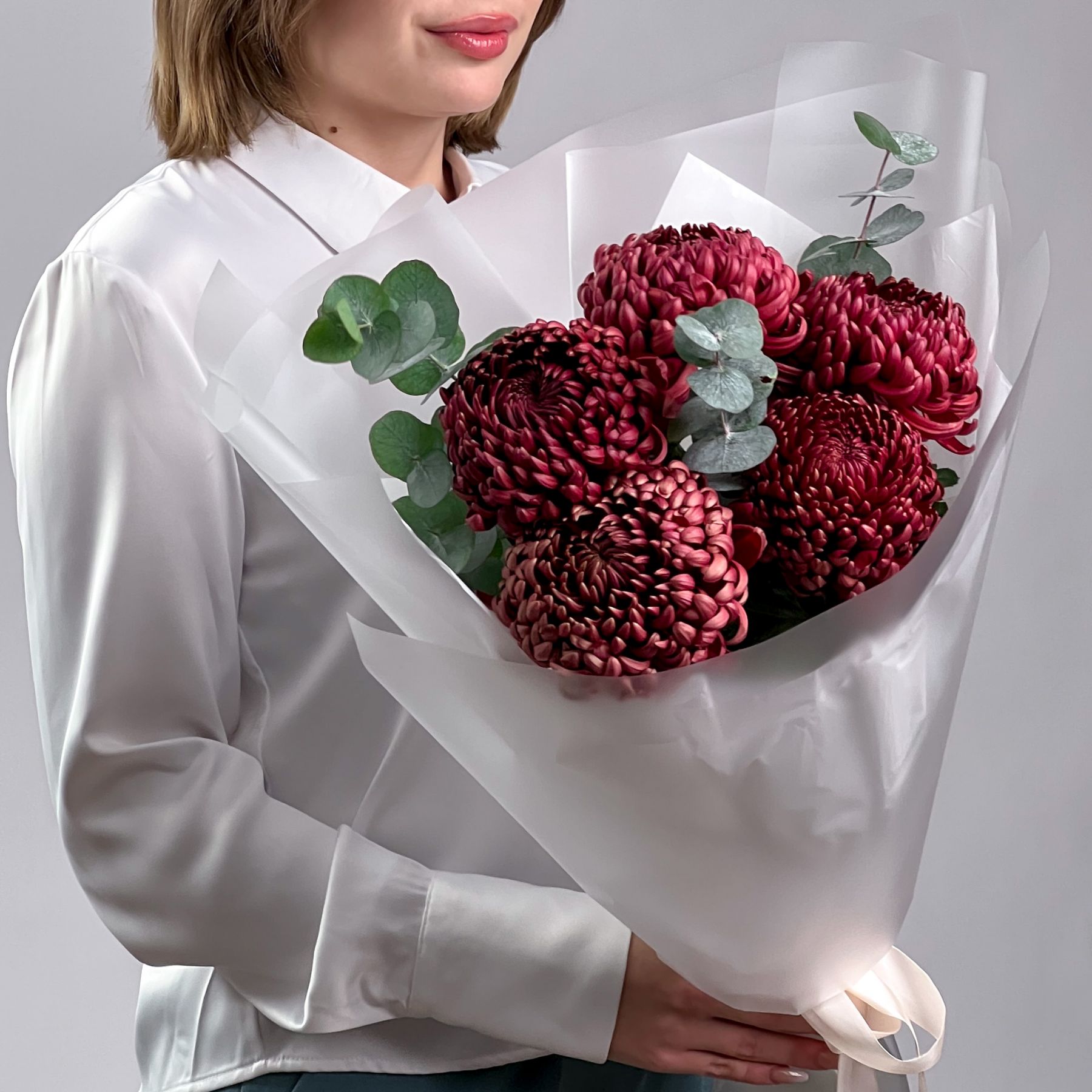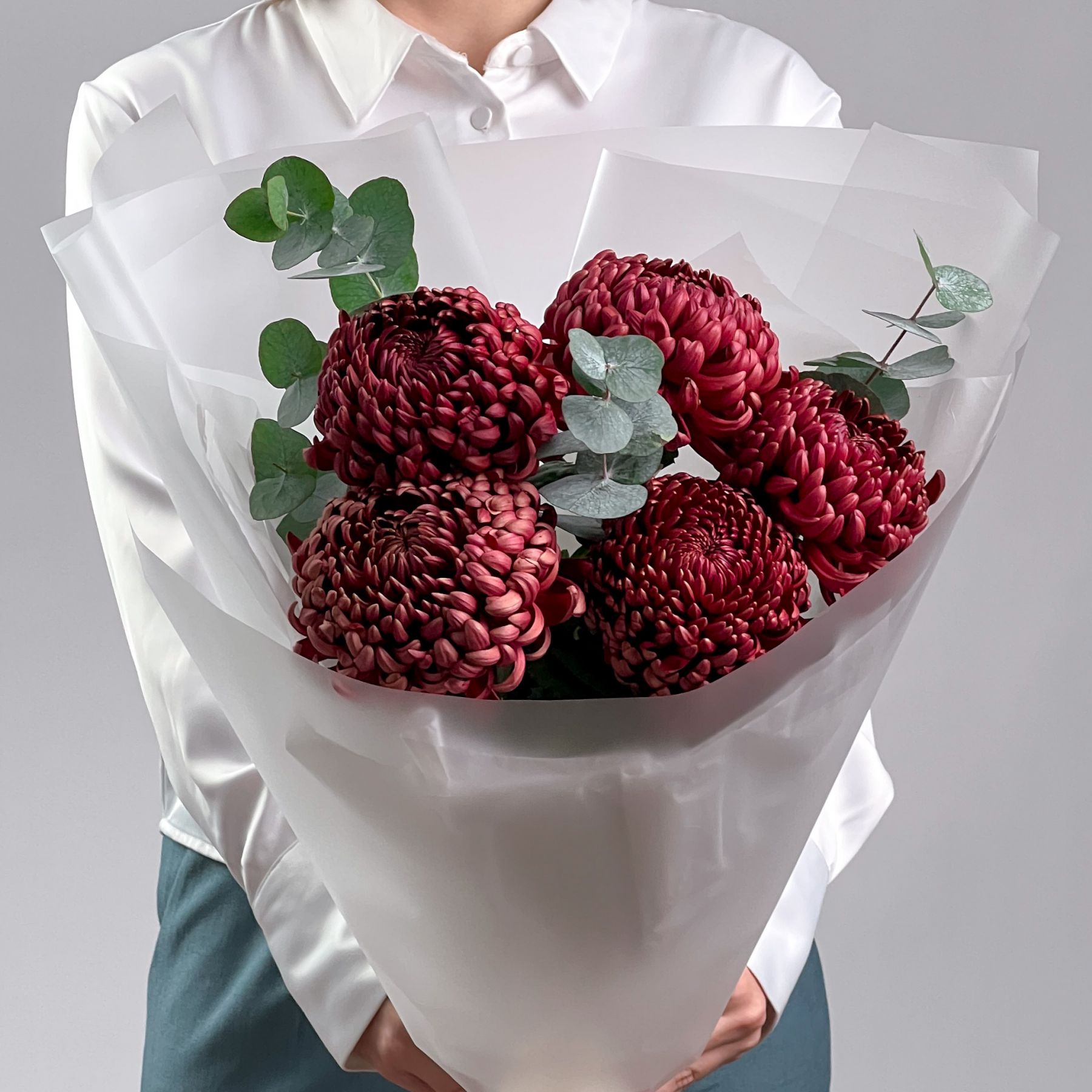 Монобукет «Бигуди бордо» — это яркий и стильный букет из пяти цветков «Бигуди бордо» и эвкалипта. Цветы красиво сочетаются и создают насыщенный образ. Букет упакован для удобства и презентабельности. Идеально подходит для подарка или украшения интерьера. Вариант с бесплатной доставкой по Самаре. Быстро и удобно оформить заказ.